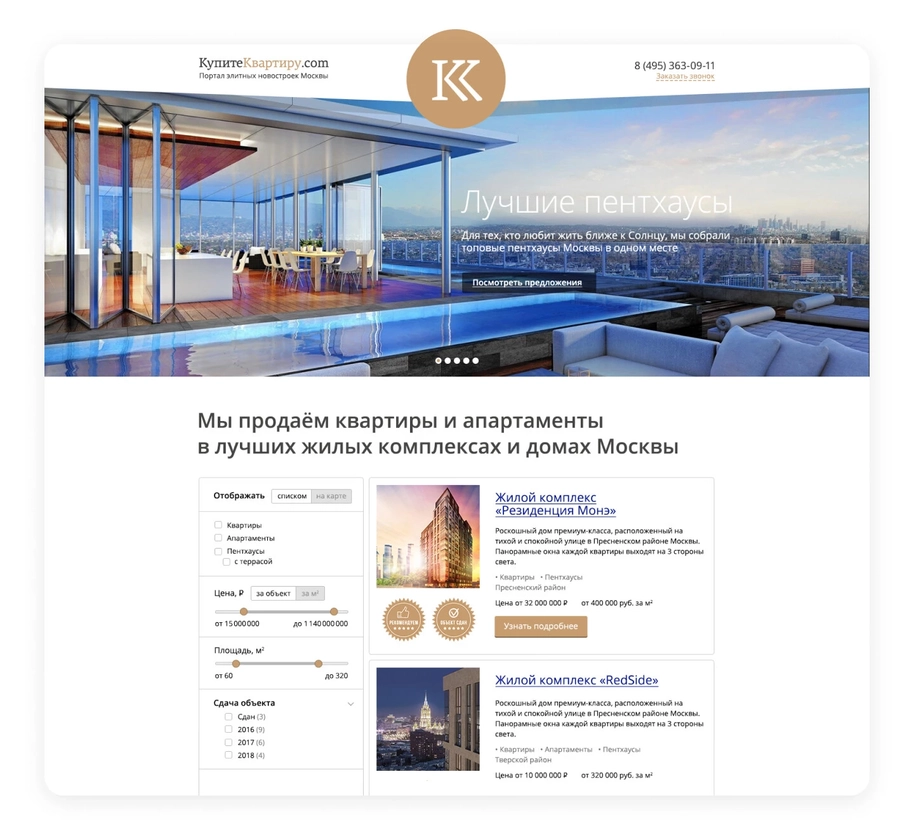 1. КупитеКвартиру.com — каталог премиум-недвижимости Москвы