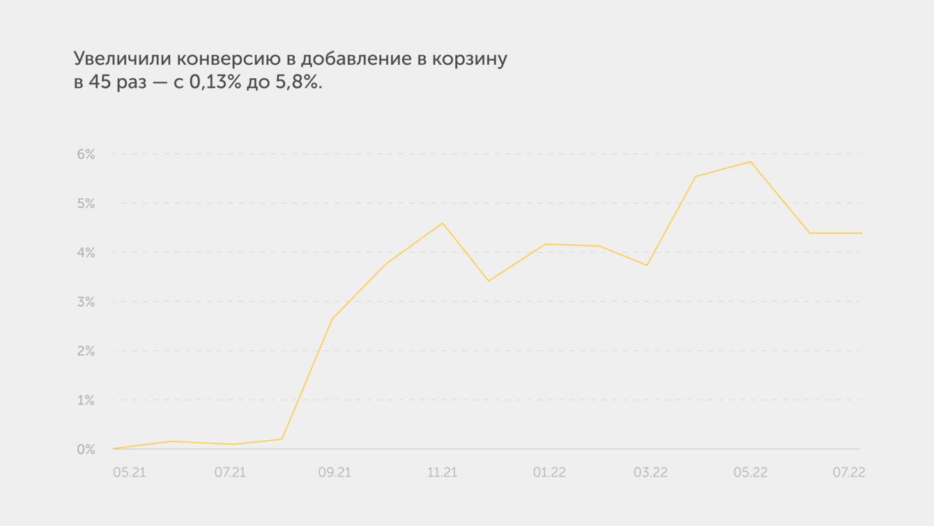 Из небольшого теста смарт-баннеров в 2019 году и 10 продаж в месяц мы выросли в 45 раз по показателям добавлений в корзину и заказов на сайте с контекстной рекламы.
