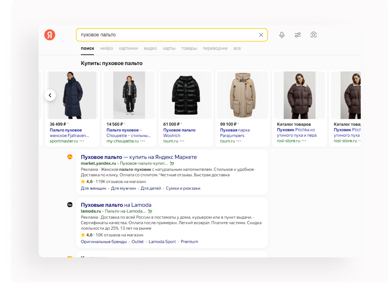 - Пользователи активнее взаимодействуют с текстово-графическими объявлениями, на которых продукция представлена на живых моделях или в аутентичных интерьерах.