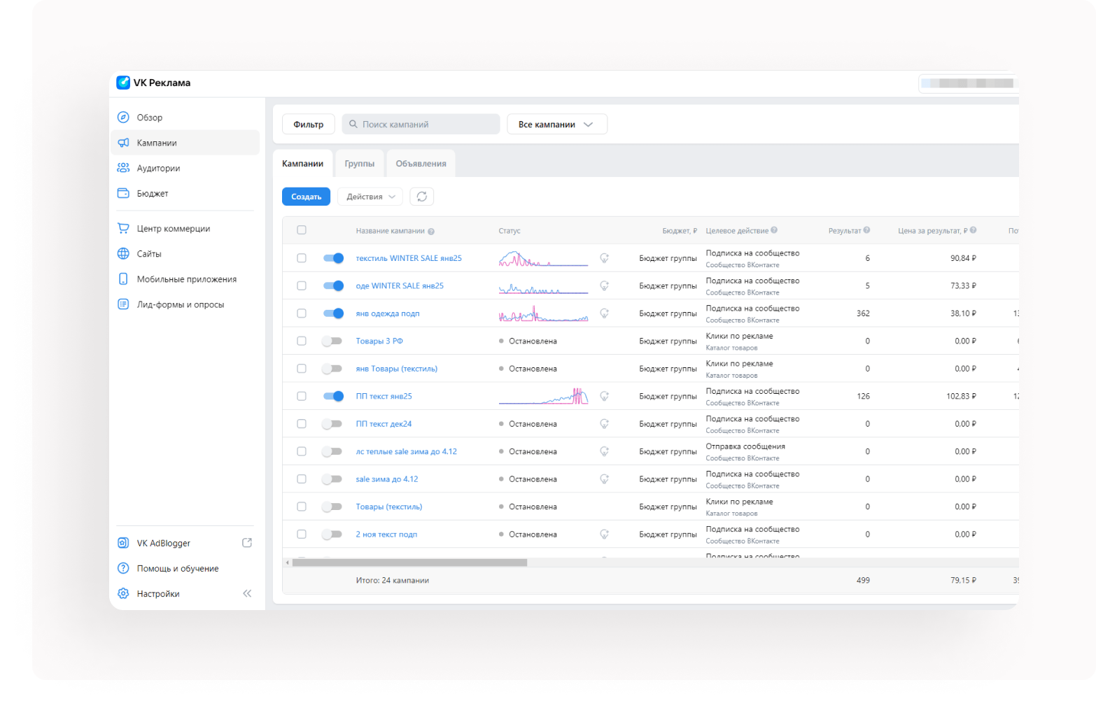 В рамках подписных кампаний акцент сделан на ценностное предложение: демонстрация ассортимента, уникальность бренда и сезонные коллекции. Такой подход позволил гибко использовать разные форматы объявлений и адаптировать их под актуальный сезон.