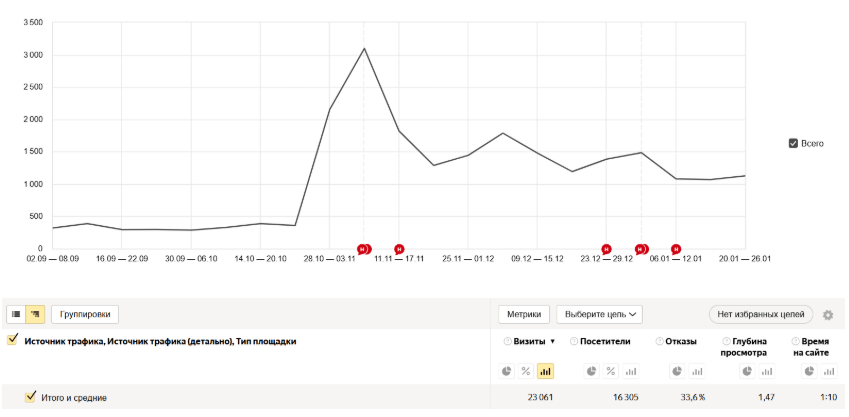 Анализ качества трафика — отслеживали поведение пользователей после клика, выявляли источники нецелевого трафика, работали с минус-словами.
