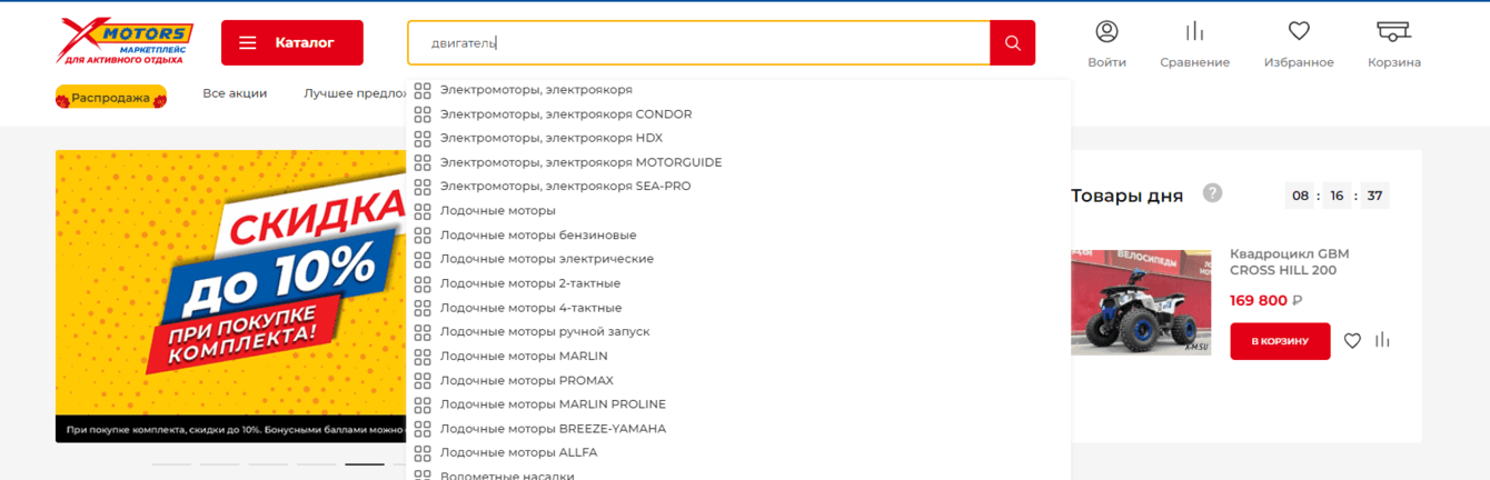 Когда мы задумались о добавлении функции поиска на сайт, то сразу отказались от штатного функционала Битрикса, а сделали выбор в пользу Elasticsearch, так как его функционал эффективнее и быстрее в условиях большого потока пользователей. Мы разделили поиск на три логических блока: товары, разделы и подсказки — и интегрировали их на сайт.