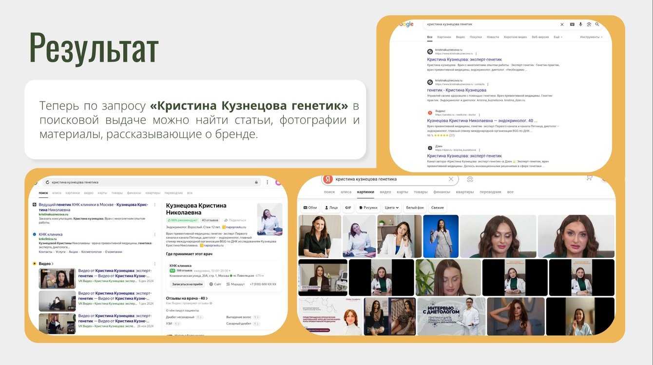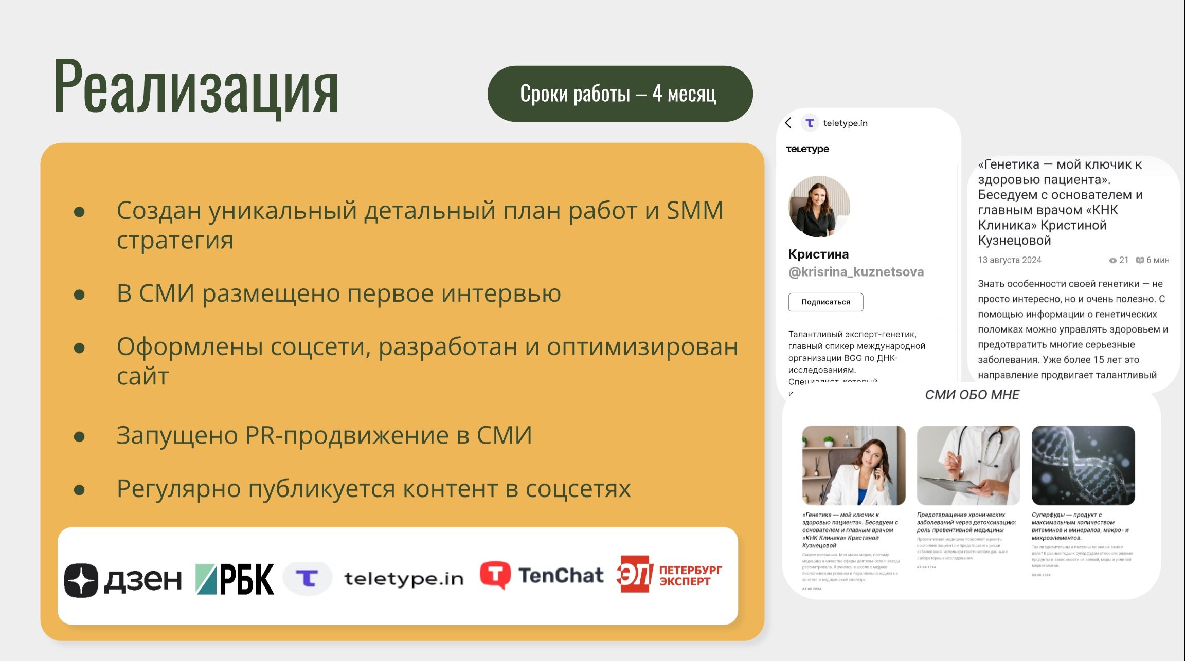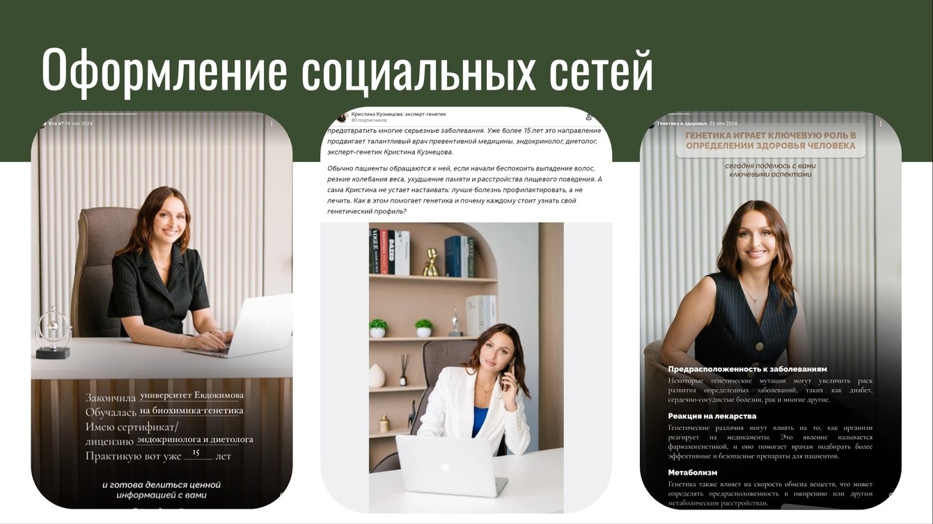 Кристина Кузнецова, ученый-генетик с серьезным академическим бэкграундом и практическим опытом в медико-генетической диагностике, обратилась с запросом на развитие личного бренда. Несмотря на глубокую экспертизу, ее цифровое присутствие не отражало реальный уровень компетенций и не позволяло масштабировать просветительскую и консультационную деятельность.
