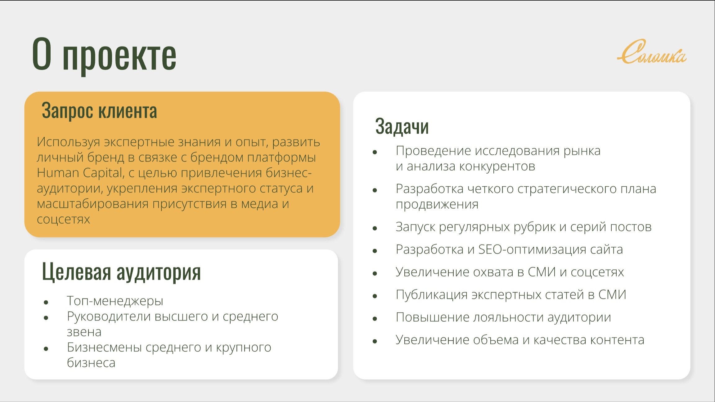 Отдельно отмечу, что за внешней лёгкостью и тёплой атмосферой в команде «Соломки» стоит серьёзная аналитическая работа и безупречное владение инструментами PR. Это редкое сочетание профессионализма и искренней вовлеченности в проект.