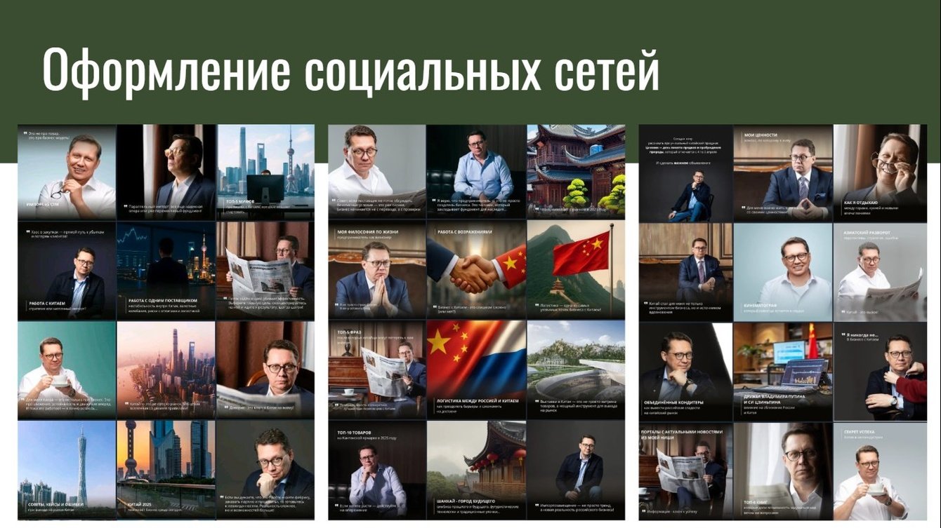 Зарегистрированы соцсети, разработана визуальная концепция и единый стиль для их ведения. Создан и внедрен контент-план, ориентированный на вовлечение, мотивацию подписчиков и продвижение через экспертный контент и личные истории. Проведена фотосессия для публикации визуальных материалов. Запущены регулярные рубрики, серии постов, stories и экспертные включения.