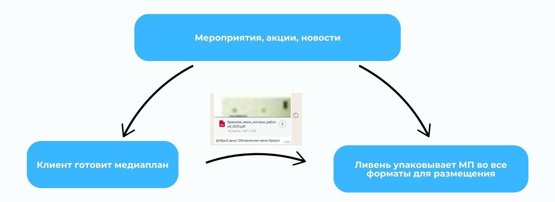 Запуск рекламных кампаний должен организовать омниканальность, то есть сделать так, чтобы при любом касании акция или новость была перед глазами как у новых пользователей, так и у постоянных посетителей. На каждую акцию мы делаем такие действия: