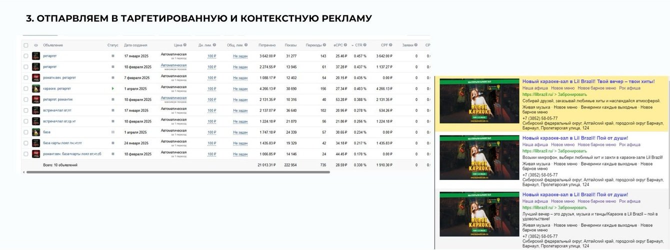 Продвижение продуктов и мероприятий бара-ресторана в рекламных системах: Яндекс Директ, ВКонтакте, Яндекс Бизнес, Телеграм, Агрегаторах