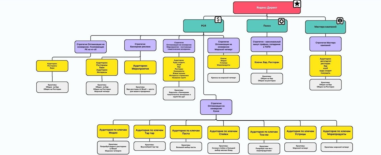Под каждый продукт в Яндекс Директ разрабатывается своя стратегия продвижения. Затем эта стратегия встраивается в текущие рекламные кампании для оптимизации бюджета.