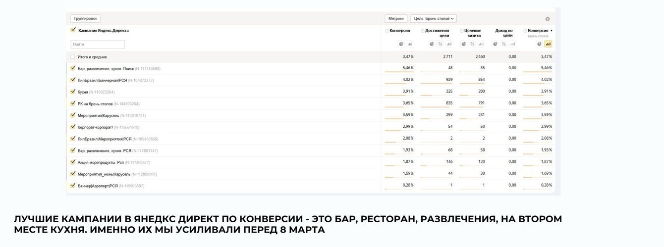 4. Аналитика и оптимизация РК на основе достигнутых целей - бронирование столов