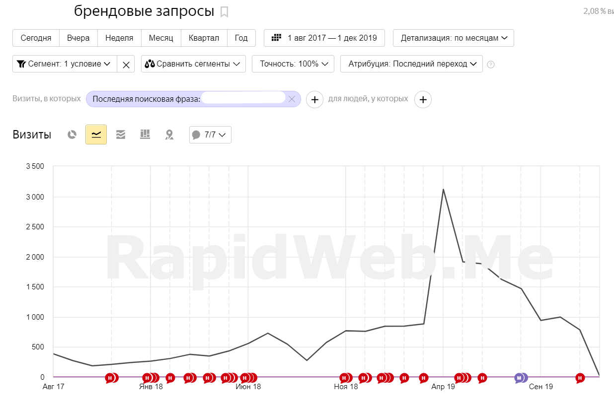 Контент-маркетинг привел к росту узнаваемости бренда и соответственно трафик по брендовым запросам вырос.