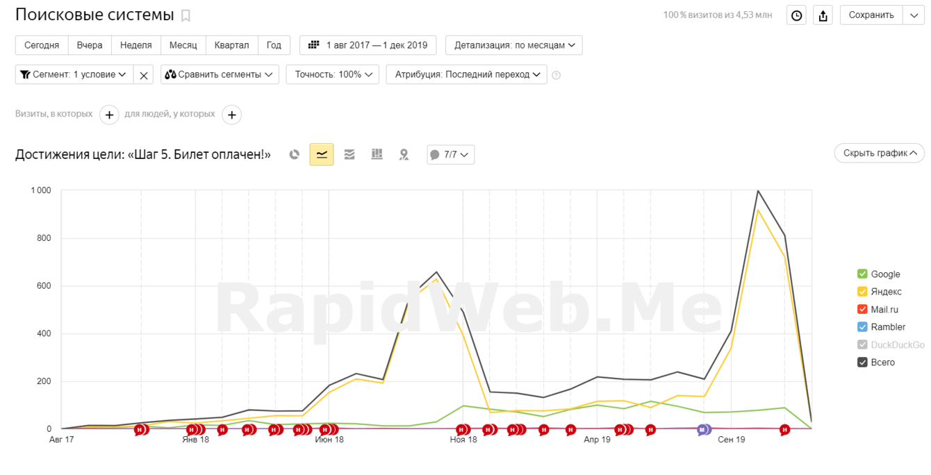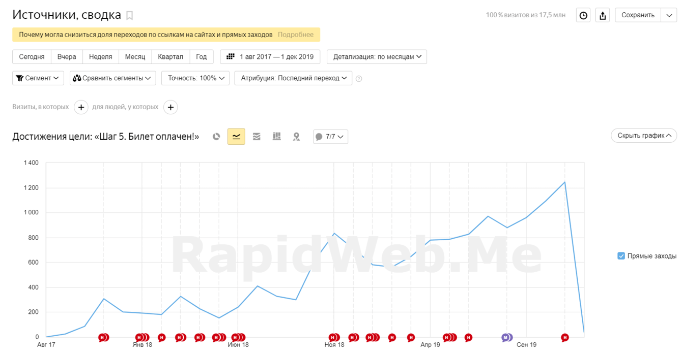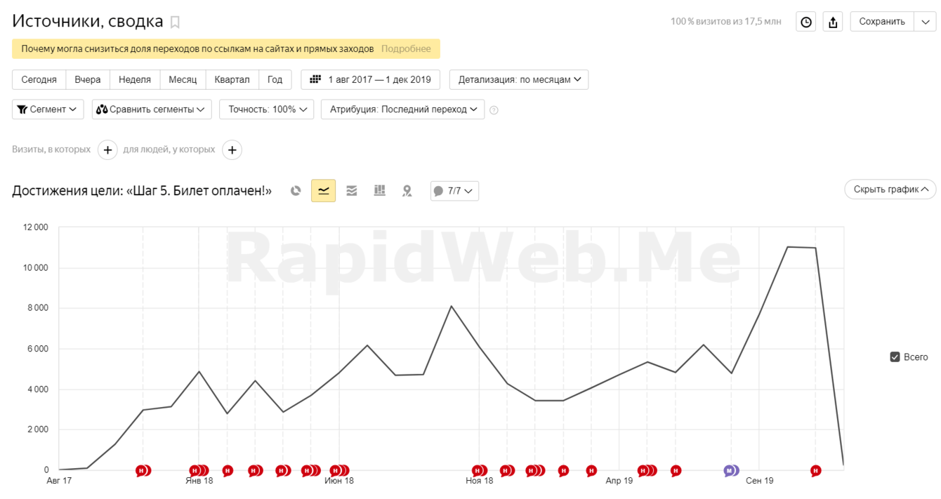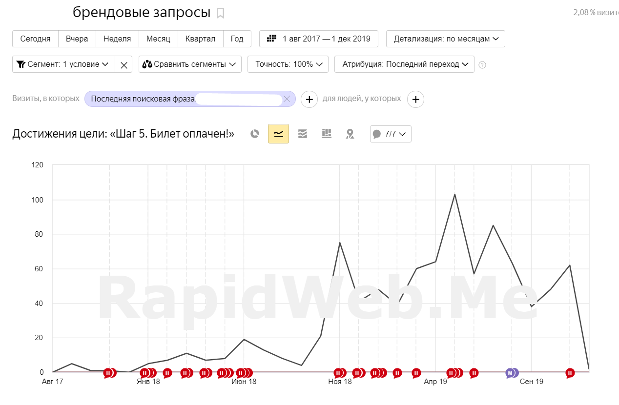 Одновременно с ростом продаж билетов с поиска, с прямых и брендовых заходов, выросла и конверсия в продажи билетов с других источников трафика, например, с платных. Таким образом издержки на привлечение клиентов снизились в десятки раз. Росту конверсии одновременно на всех каналах трафика однозначно способствовал рост трастовости бренда и повышения лояльности пользователей к бренду.