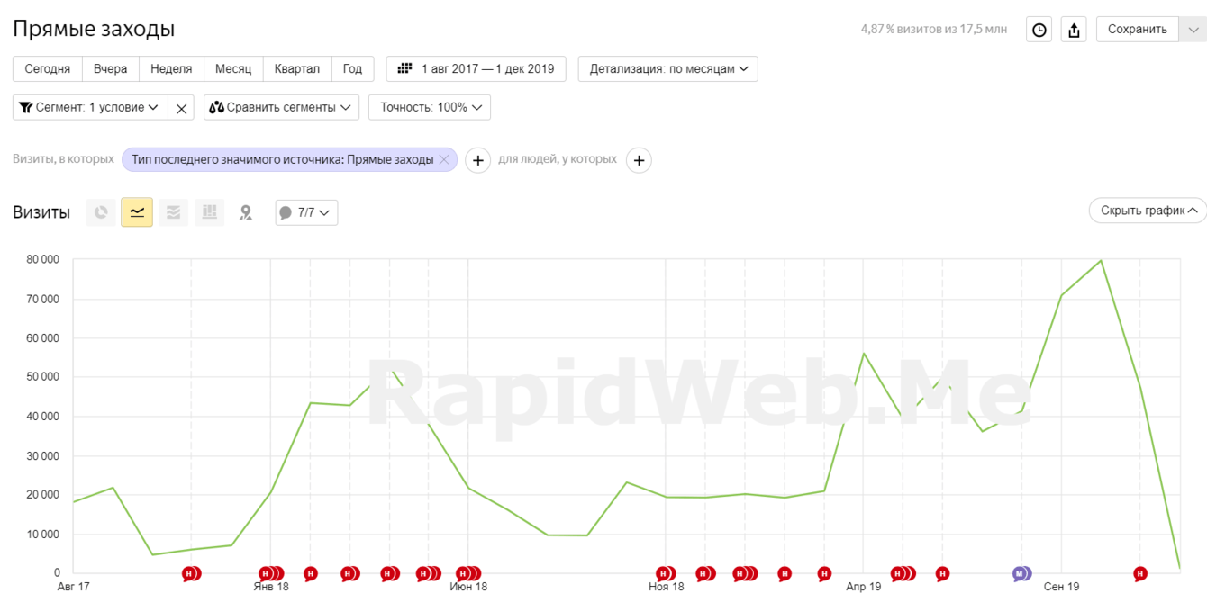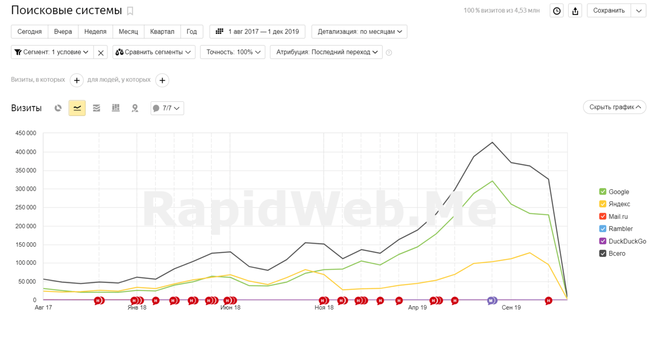 По высокочастотным коммерческим словам, хоть и наблюдается постоянный рост позиций, но пока первых страниц поисковой выдачи мы не добились. Зато тщательно проработанное семантическое ядро, анализ НЧ-запросов и производство соответствующего контента позволили получить отличную динамику трафика из поисковых систем. (По SEO мы тоже планируем написать отдельный кейс).