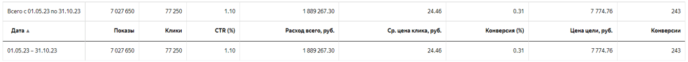 Если убрать из фильтра РСЯ, CPC высокий — 210₽ (иногда платили и 310₽ за клик). В день количество переходов по объявлению от 300 до 700 раз. Простая математика: 300 * 210 = 63 000₽. Добавим маленький P. S. — реклама показывалась на третьих-четвертых позициях.