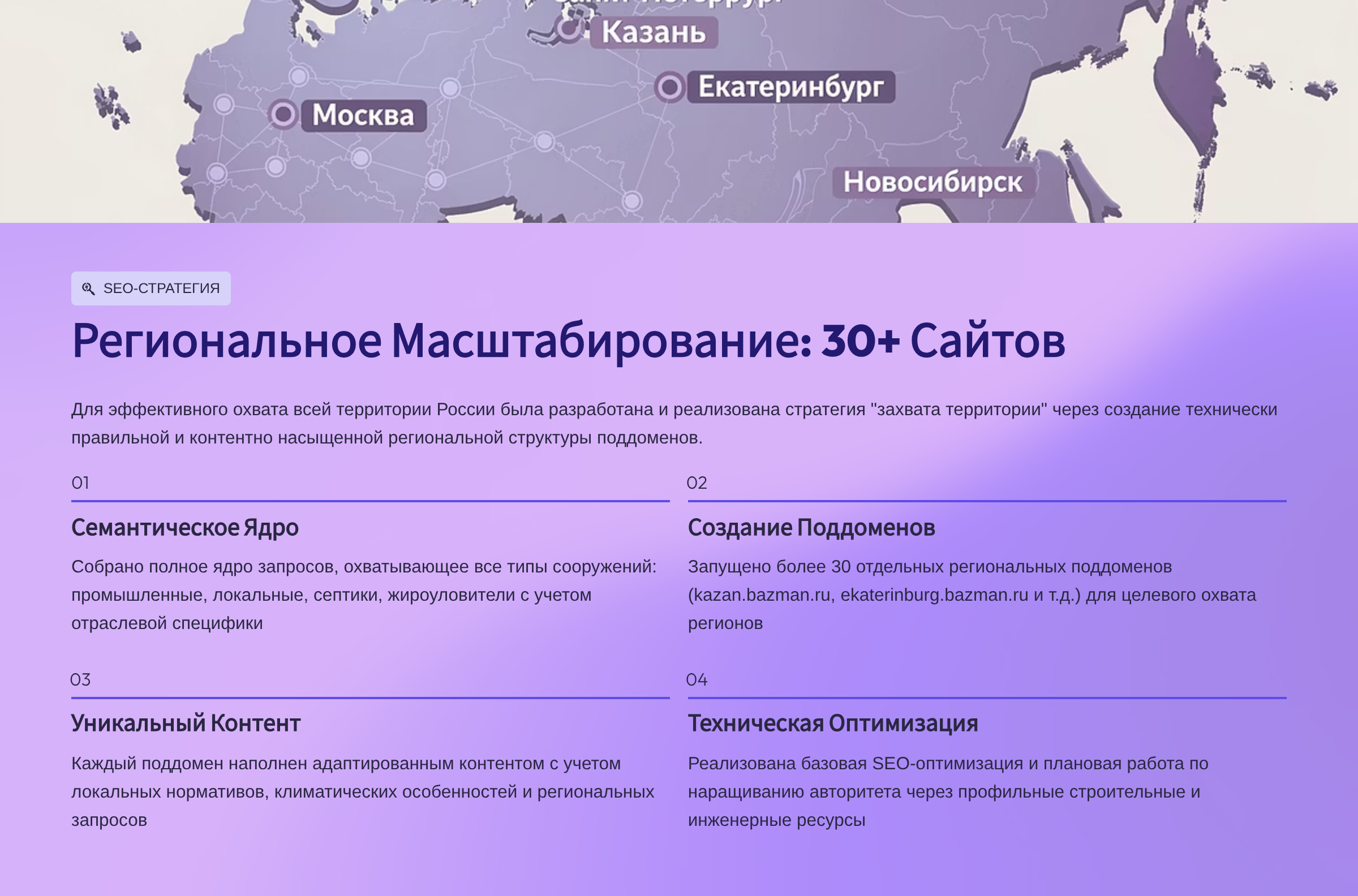 Региональный Захват: Укрепление статуса федерального поставщика благодаря доминированию в локальном поиске по всей территории РФ.