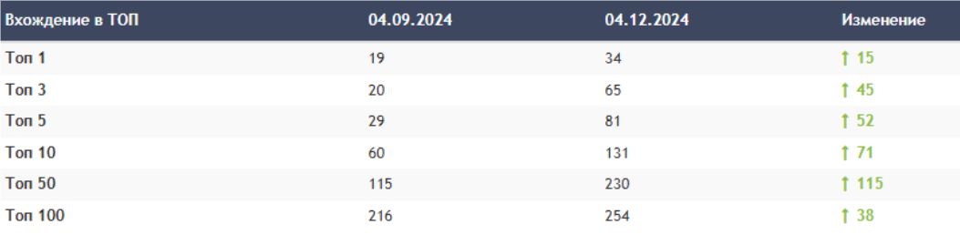 ТОП-3: 45 запросов в Яндексе и 15 запросов в Google