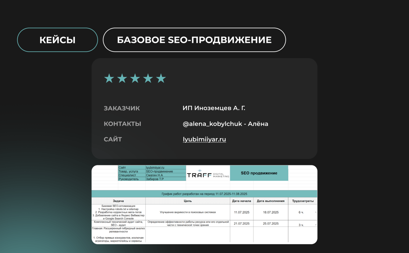 Проведен полный SEO-аудит с выявлением технических ошибок, недоработок мета-тегов и проблем с индексированием.