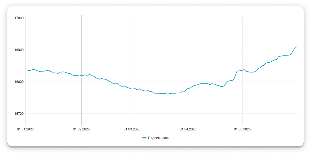 - Telegram: подписчики выросли на 5%, вовлеченность стабильно росла.
