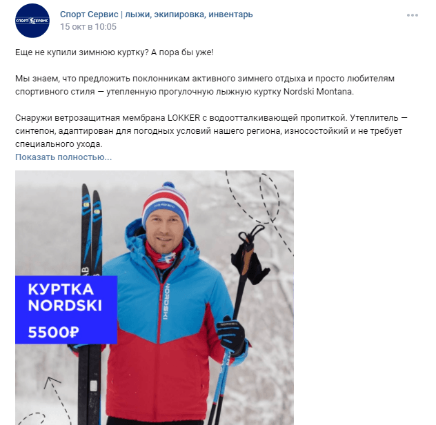 Было подготовлено 9 постов по ключевым темам продвижения: зимняя одежда Nordski, лыжный инвентарь и информация о магазине.
