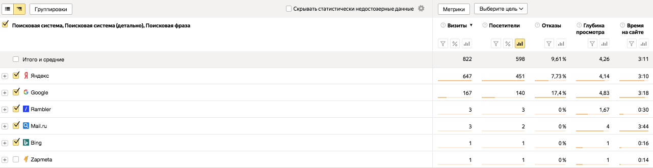 - Общая конверсия многостраничного сайта со всех источников – 2,7 %.