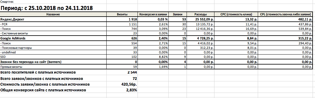 - Стоимость целевой заявки/звонка – 420,56 р.