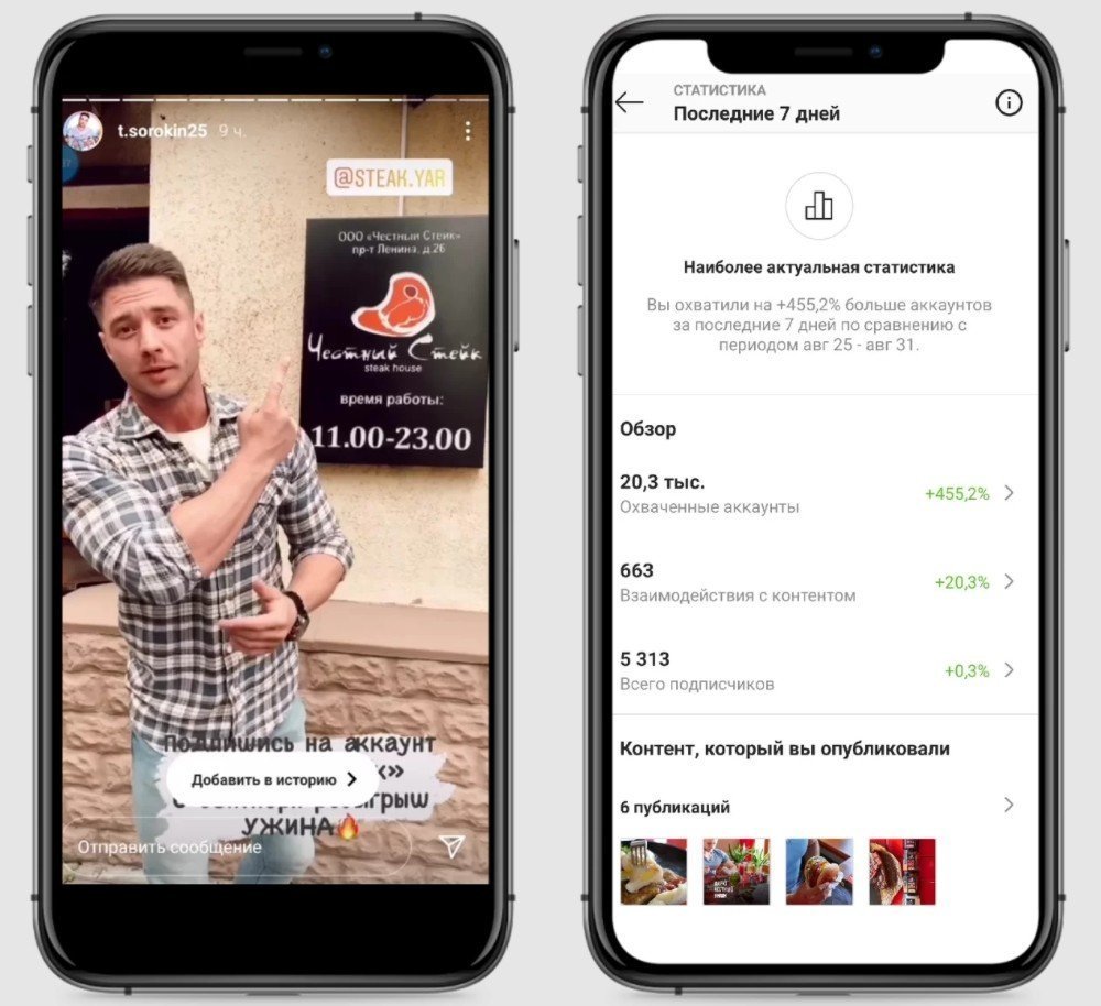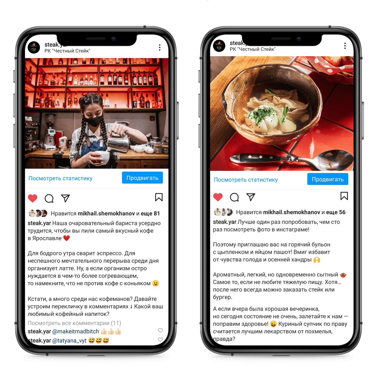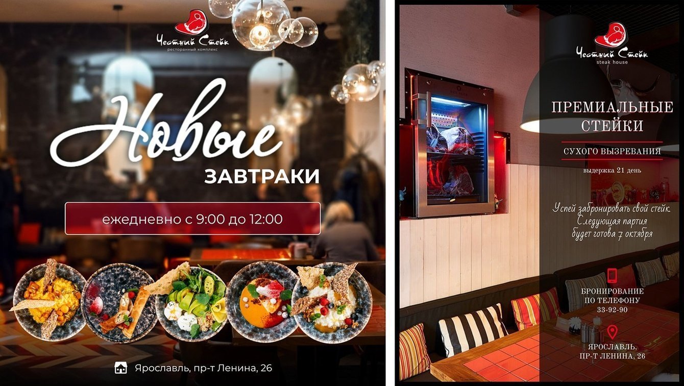Так как Ресторанный комплекс «Честный Стейк» очень известное заведение Ярославля и о нём знает больший процент города, задача стояла не сколько увеличить число подписчиков или получить клиентов здесь и сейчас, сколько максимально охватить аудиторию Ярославля, проинформировать жителей города о скидках, новинках и других предложениях ресторанного комплекса, напомнить о себе.