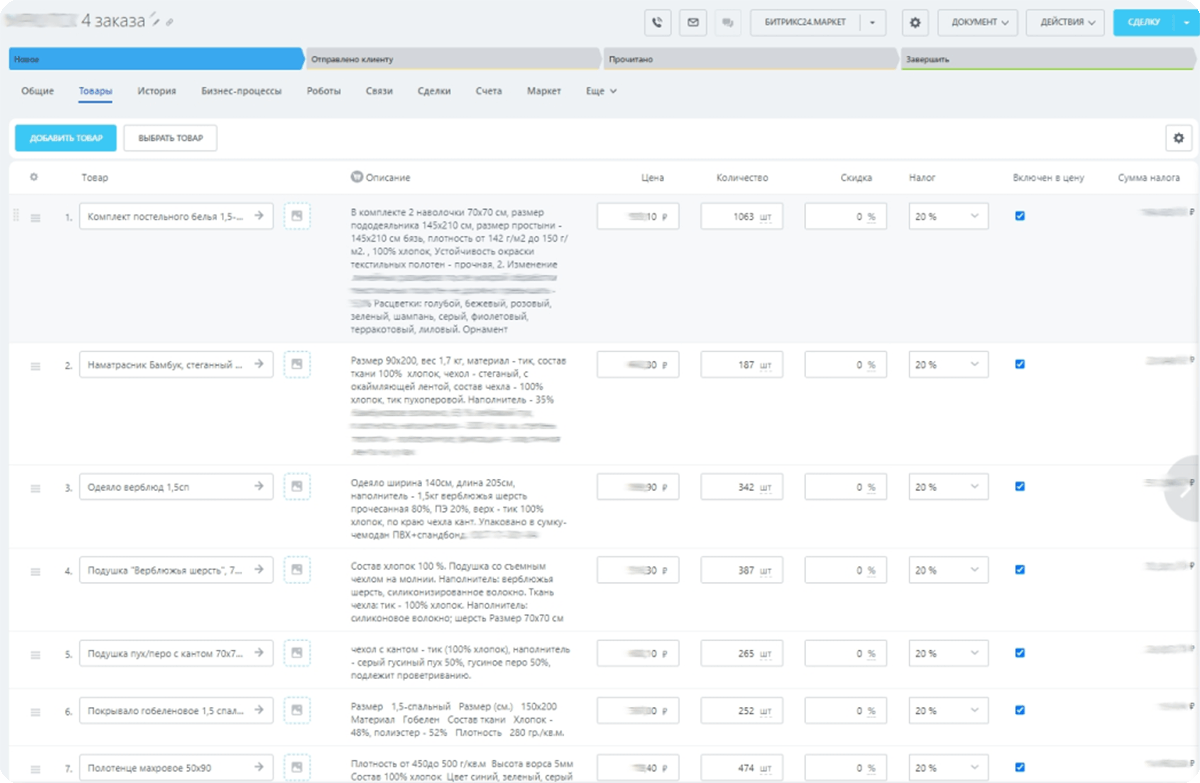 Менеджеры всех отделов после расчета автоматически выгружают товары из файла в сделку, и далее в пару кликов генерируют и отправляют коммерческое клиенту. Система посылает уведомление о прочтении КП, и менеджер может сразу перезвонить для получения обратной связи. После успешного согласования, аналогично быстро создает и отправляет договор.
