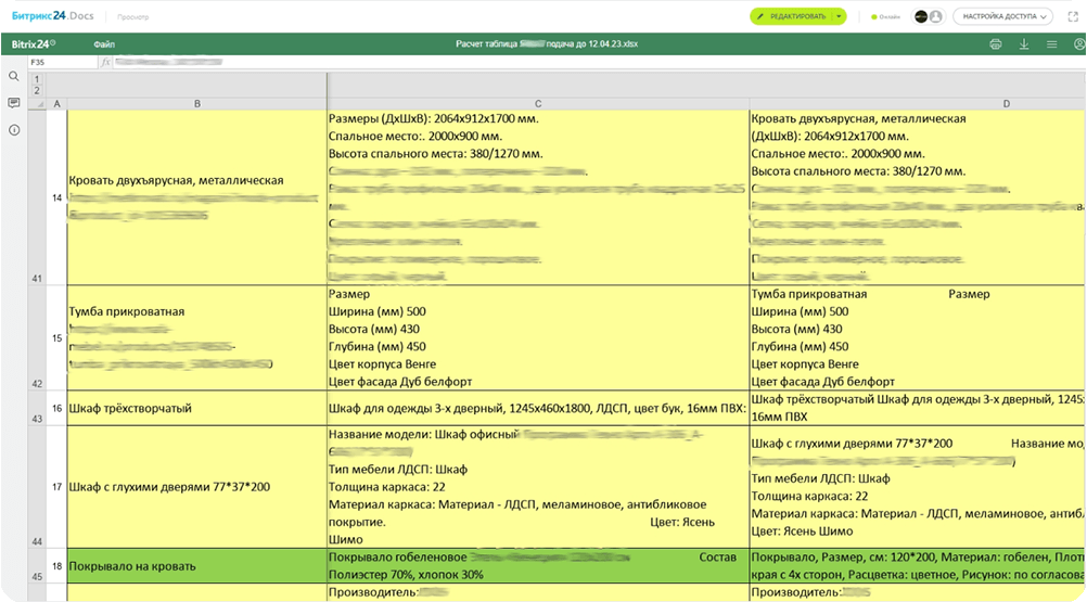 ► Все специалисты, участвующие в расчетах, работают в одном встроенном окне редактора Excel, а все товары с ценой и детальной информацией по окончанию расчета автоматически отправляются в CRM.