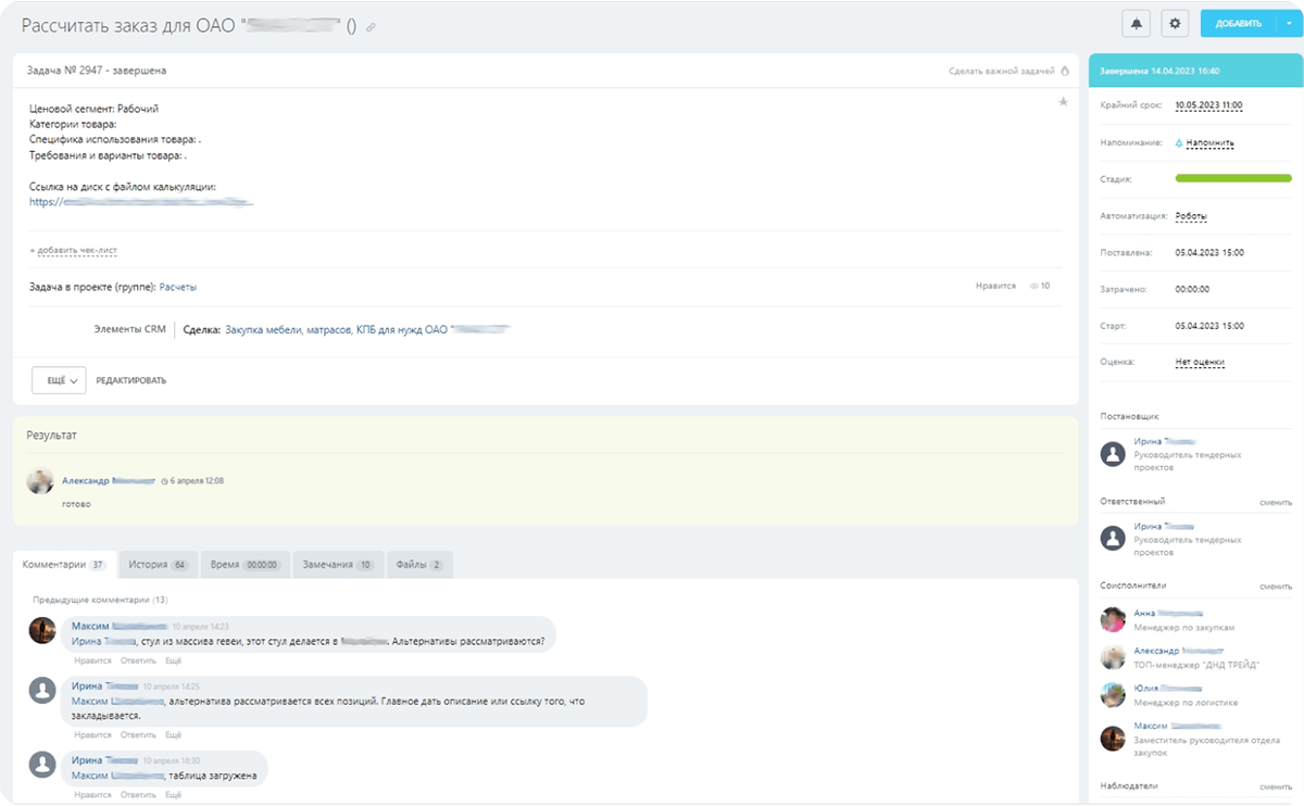 С помощью Битрикс24 мы объединили коммуникации и процессы работы нескольких отделов в одном информационном пространстве, автоматизировали обмен данными с тендерной площадкой и интегрировали Excel для совместных расчетов.