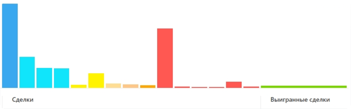 В свою очередь отчет по обычной воронке (не конверсионной) позволяет проанализировать данные по этапам, с которых чаще всего «отваливаются» заказы и далее можно аналогично проработать ошибки и оптимизировать бизнес-процессы компании.