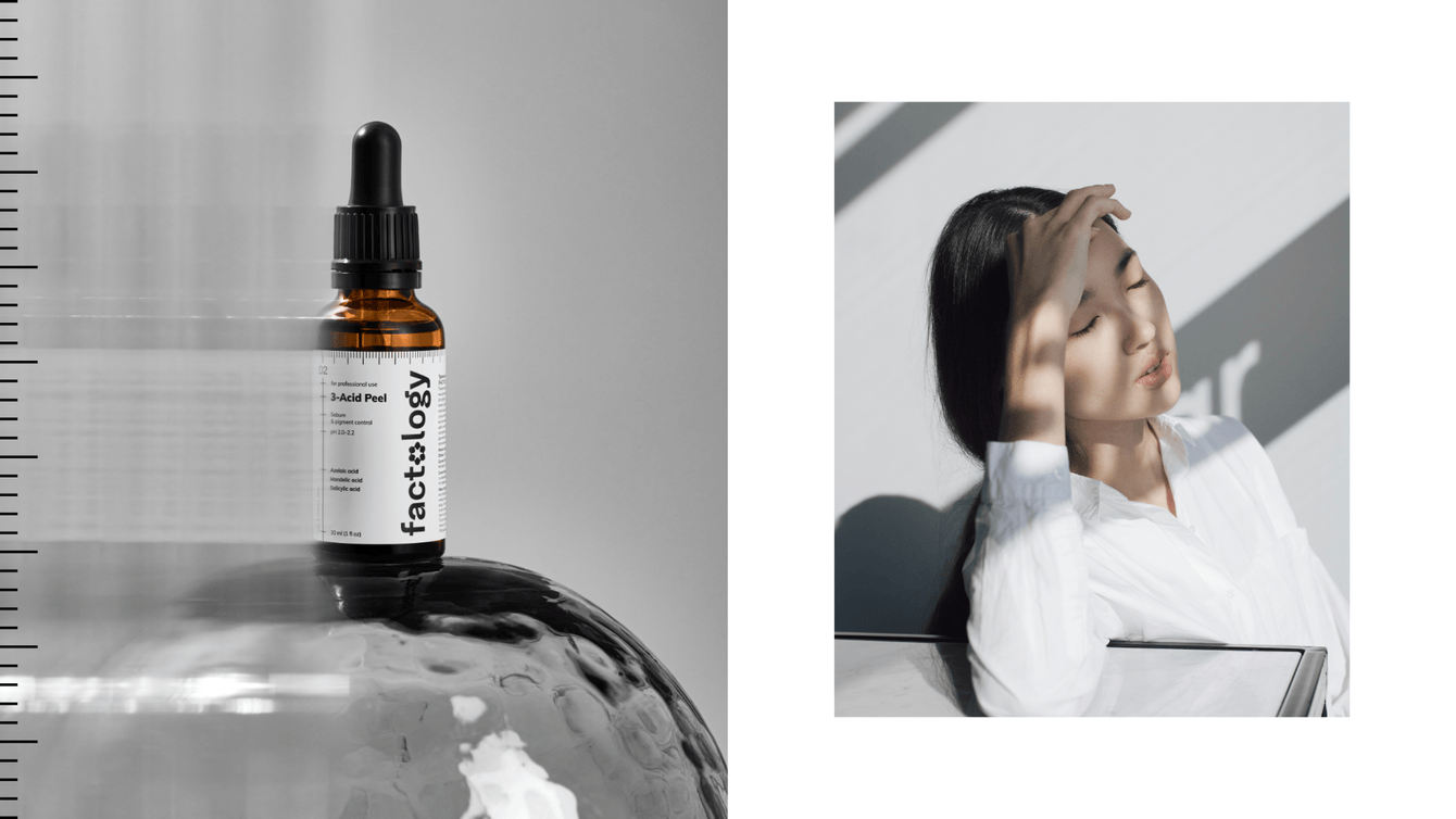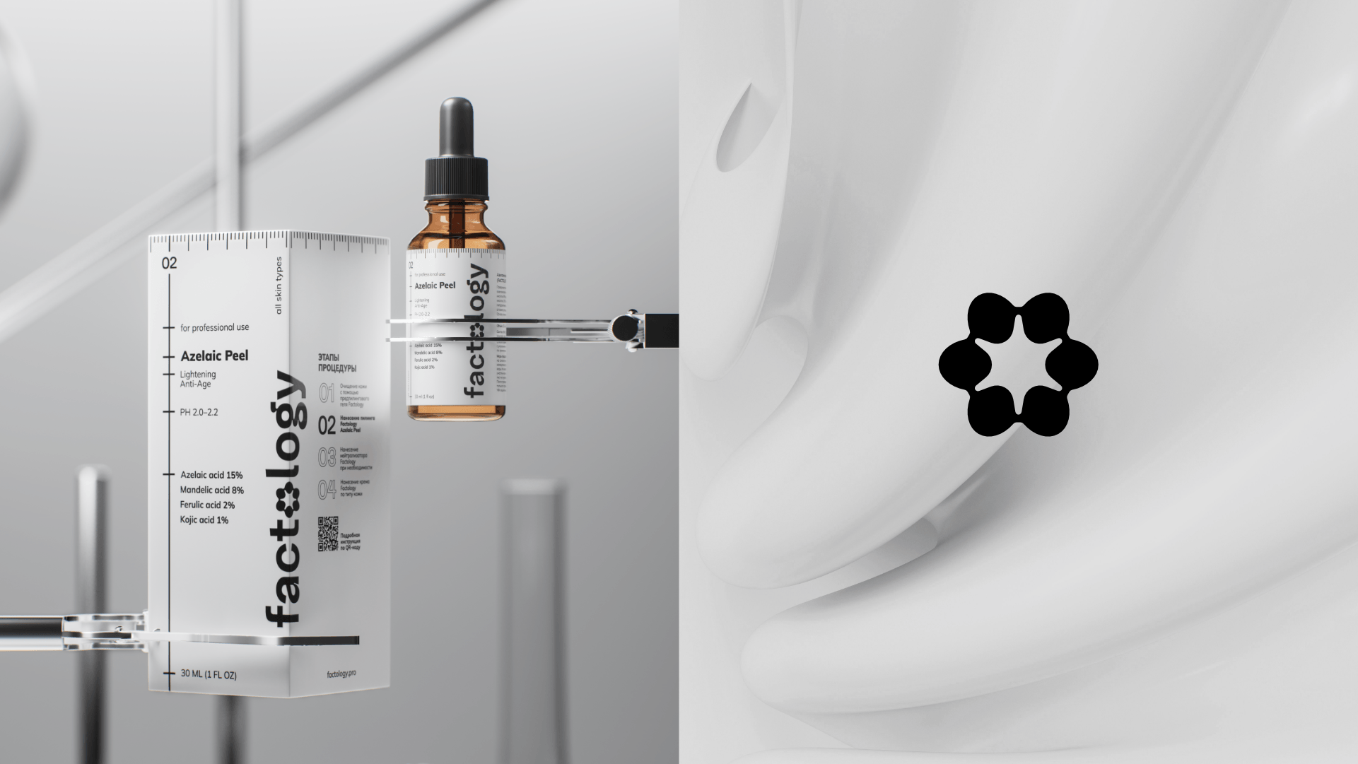 Визуальный язык Factology — это профессиональная косметика, которая говорит на языке медицины. Мы ушли от любых ассоциаций с масс-маркетом и бьюти-полками, где «красиво» побеждает «эффективно».