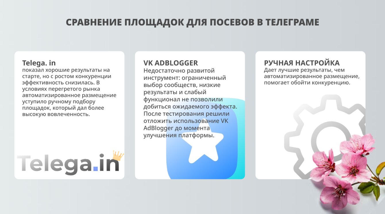 ● Автоматизированные платформы (Telega.in, VK AdBlogger).