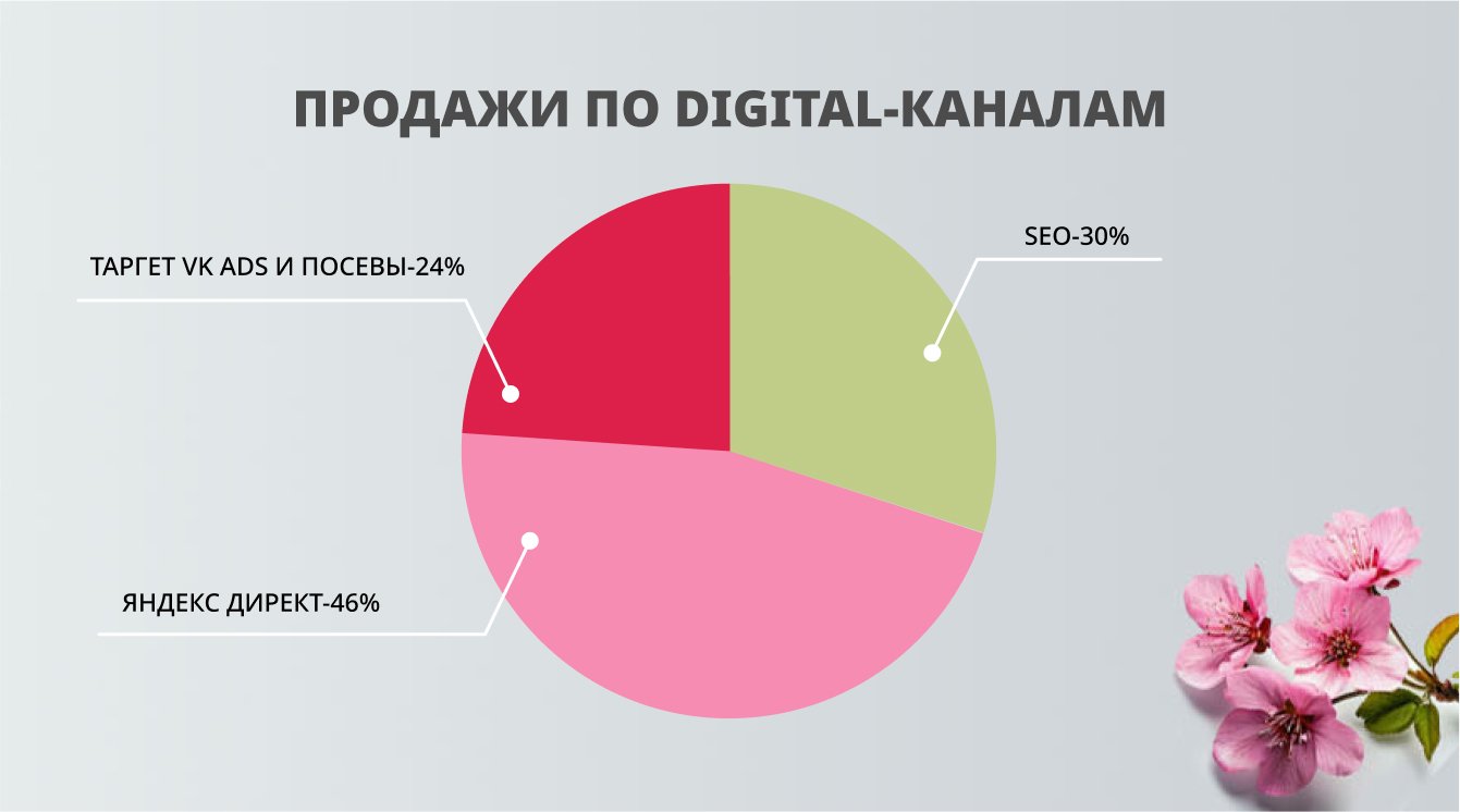 За последние 6 мес доля сделок Яндекс Директ на проекте составила 46% от всех digital-продаж.