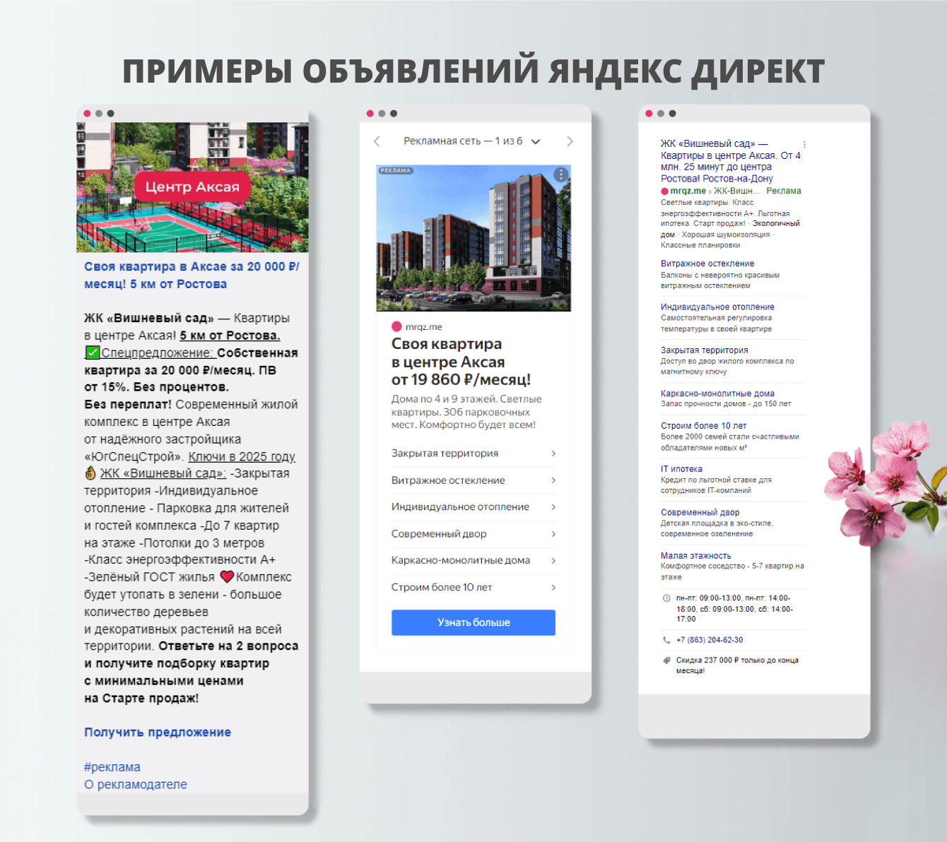 Не секрет, что Директ сегодня главный источник лидов в недвижимости. Он привлекает целевую аудиторию и дает стабильный поток заявок.