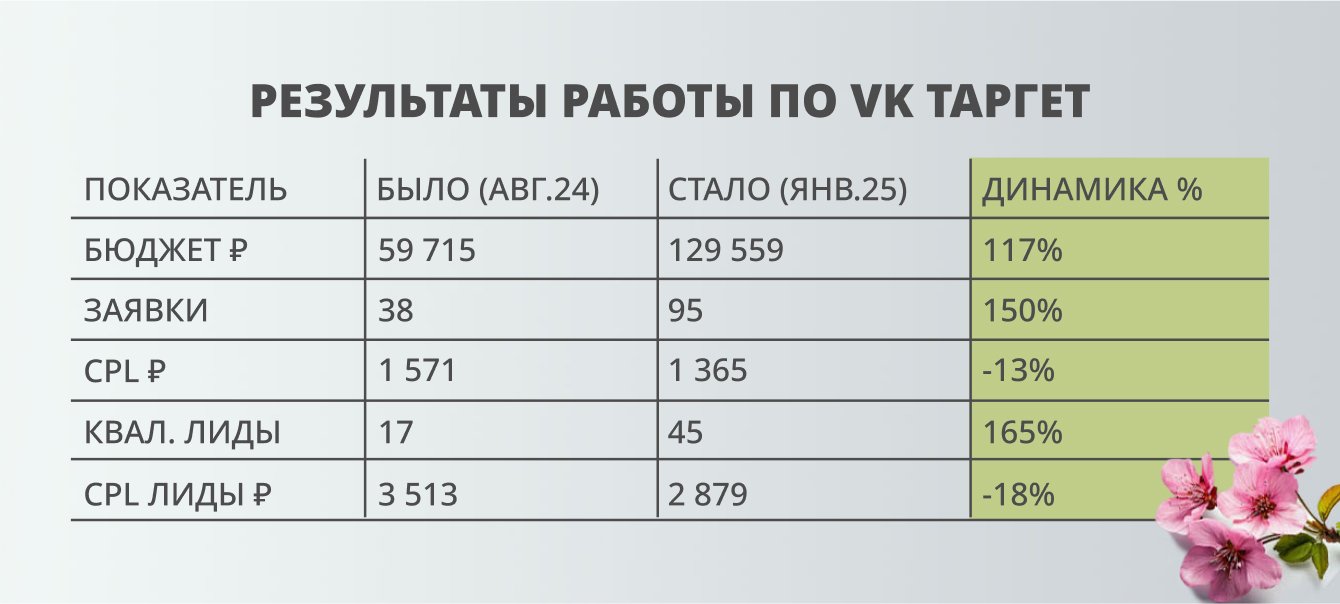 Генерировали заявки с CPL не выше 3 000 ₽, с CPL квал. лида до 5 000 ₽.