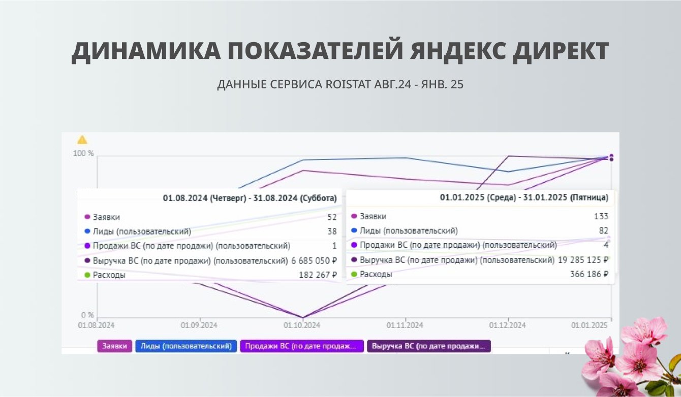 Вначале работы над проектом в 2023 и первой половине 24 все было стабильно. Удалось поднять конверсию и выдавать необходимое количество лидов для выполнения плана продаж.