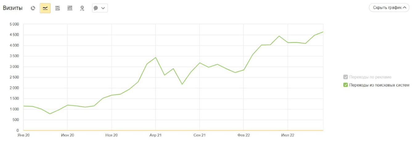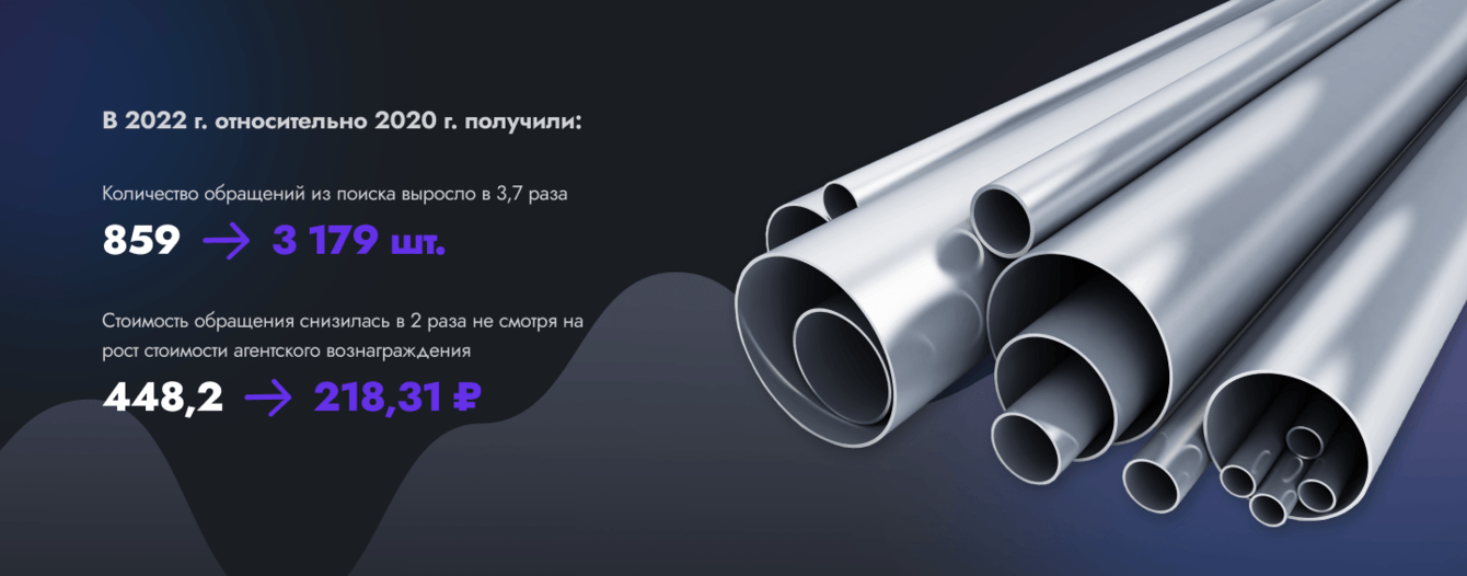 Средняя стоимость обращения из поиска 261 ₽, что в 4 раза меньше, чем с контекстной рекламы.