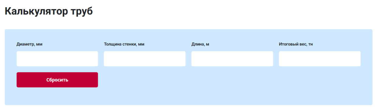 Основные разделы сайта и типы каталога закрепили в шапке. Организовали фильтр и удобный поисковик, где достаточно указать нужный типоразмер, чтобы легко и быстро найти нужную трубу.