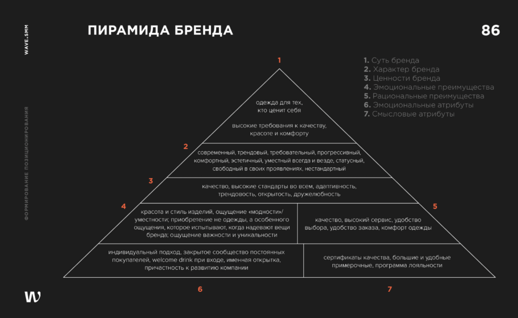 пирамиде бренда — краткой выжимке основных смыслов, которую в дальнейшем удобно передавать любым подрядчикам (SMM-специалистам, дизайнерам и т.д.).