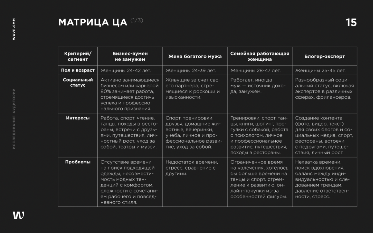 1. В блоке анализа целевой аудитории специалисты маркетингового отдела WAVE:
