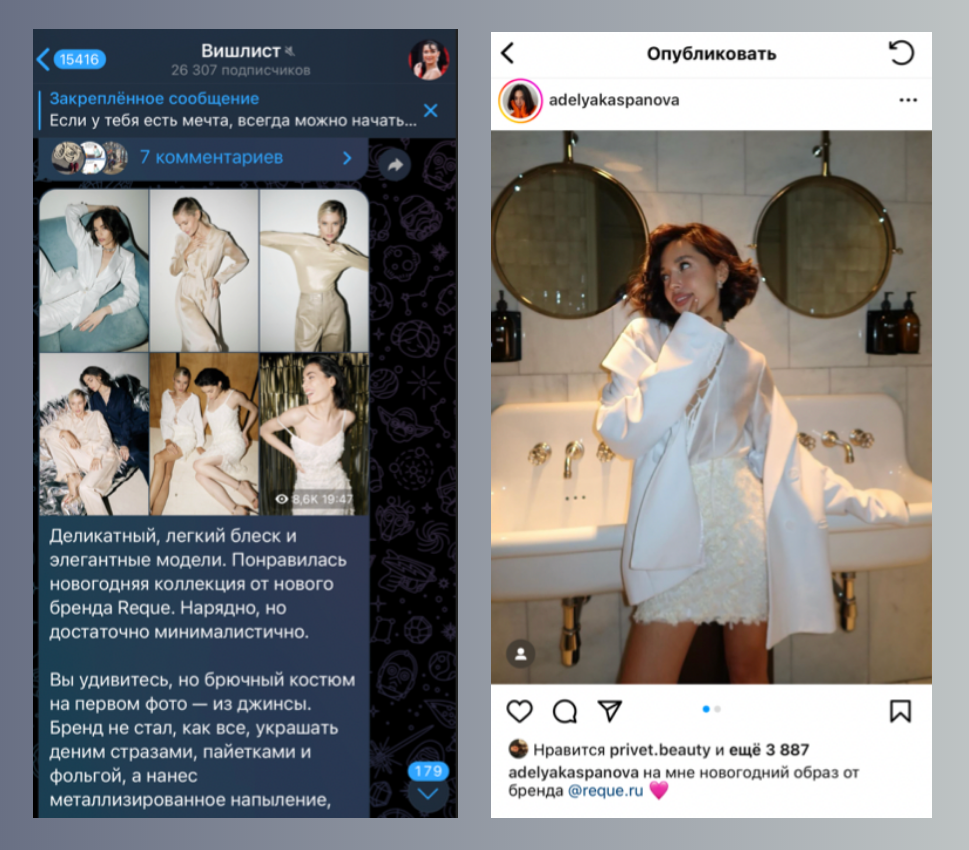 VK — акцент на вовлекающие в коммуникацию форматы: опросы аудитории, вовлечение в процесс создания коллекций, подборки музыки, фильмов и вдохновения;