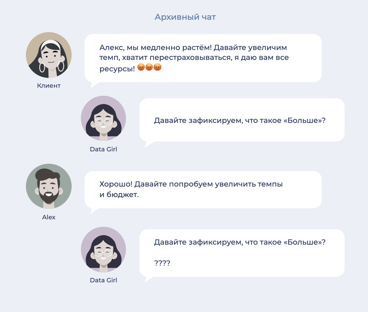 В конце 2018 и начале 2019 года клиента беспокоило, что мы медленно растем. Что такое «медленно» никто не понимал, но факт был — клиент хотел больше.