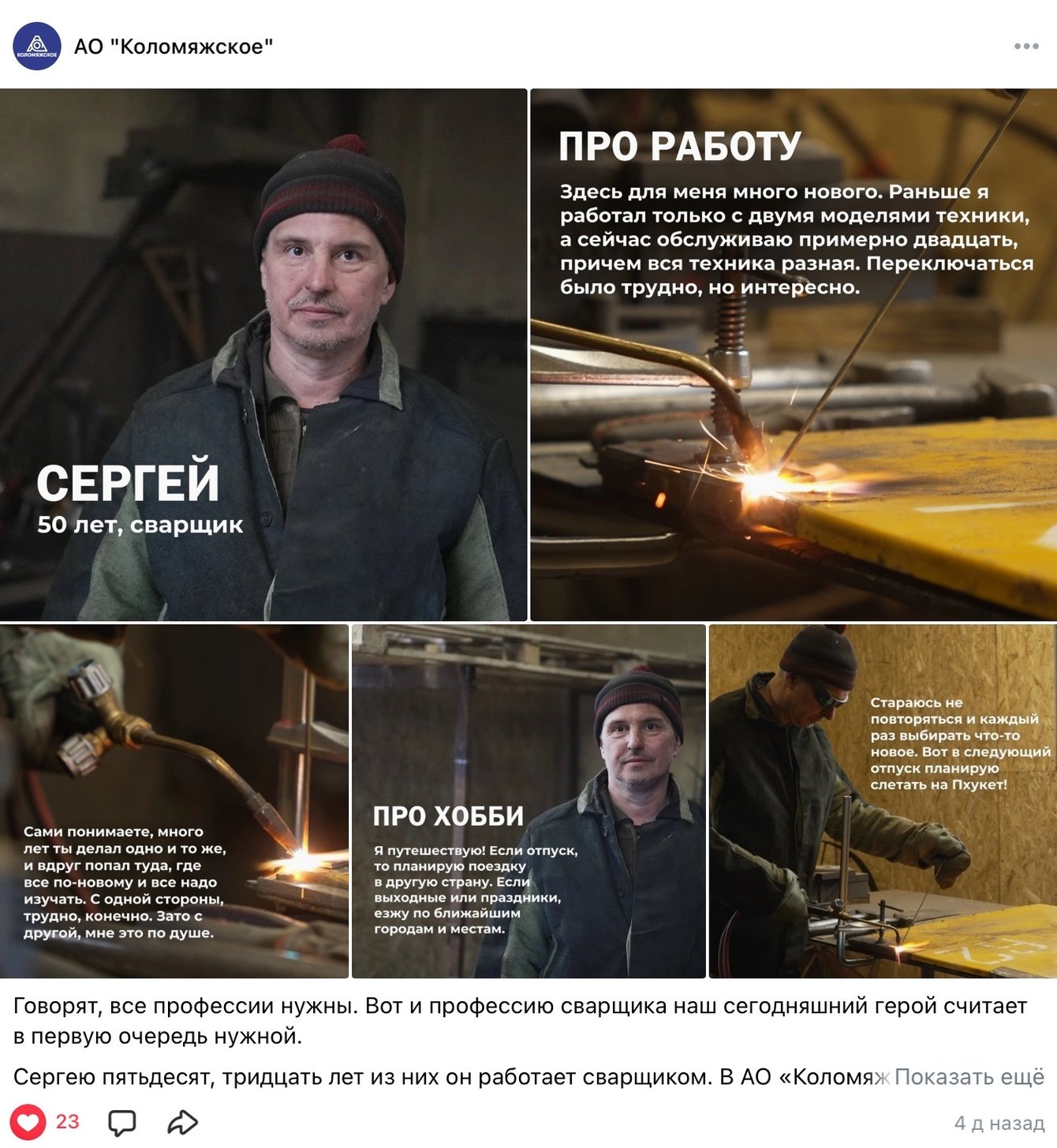 В каждом посте считывается уважение к труду команды. Использовали профессиональные камеры, ведь наши герои достойны журнальных фото, а в текстах сделали акцент на качестве работы и людях. Не для галочки, а чтобы все увидели, какой вклад вносят коломяжцы в настоящее и будущее Петербурга.