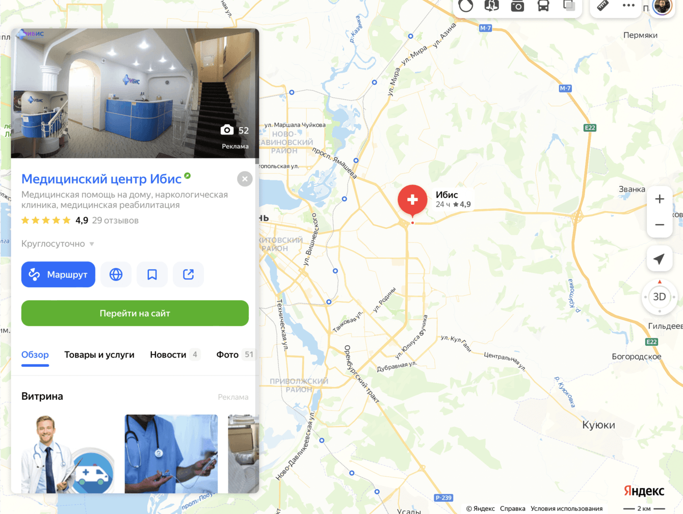 Грамотно настроенная сквозная аналитика показала, что нам следует проработать каналы в Картах. Это достаточно важный канал поступления посетителей на сайт клиента, который требует оптимизации В дополнение к улучшению их контекстной рекламы, мы помогли клиенту с настройкой SEO и продвижением клиники на Яндексе.Карты и сервисе 2Gis. Это позволило клинике охватить новую аудиторию, повысить узнаваемость и привлечь больше трафика на свой веб-сайт.