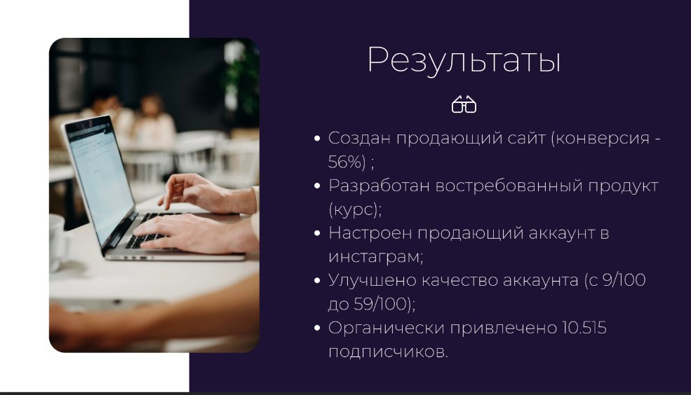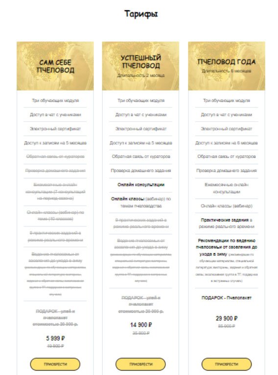 - Разработан основной продукт–три тарифа курса с ценой от 5 999 р. до 29 900 р.