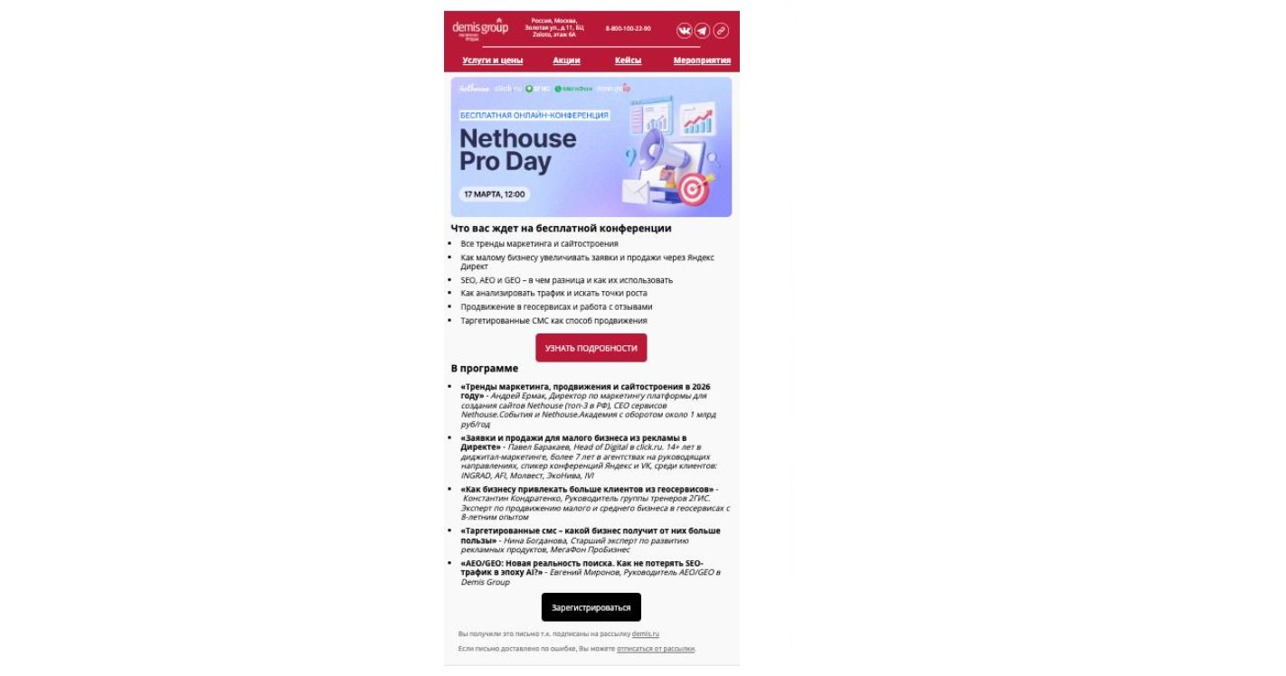 За 2025 год было проведено 62 собственных мероприятия, не считая участия в партнерских. Наибольший эффект продвижения показали email-рассылки.