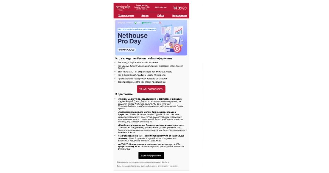 Еще один важный инструмент новой стратегии — это регулярные тематические онлайн-конференции под брендом Demis PRO.
