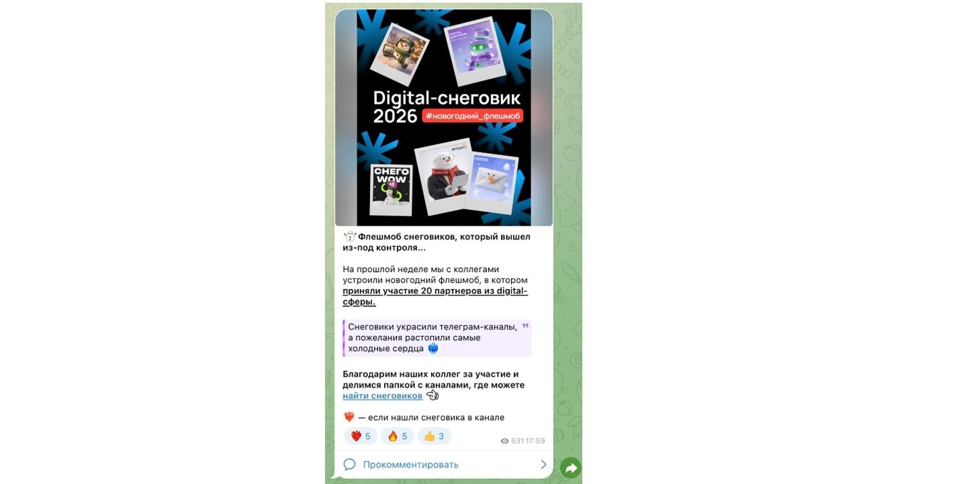 Например, к нашему флешмобу со снеговиками присоединилось более 20 партнеров.