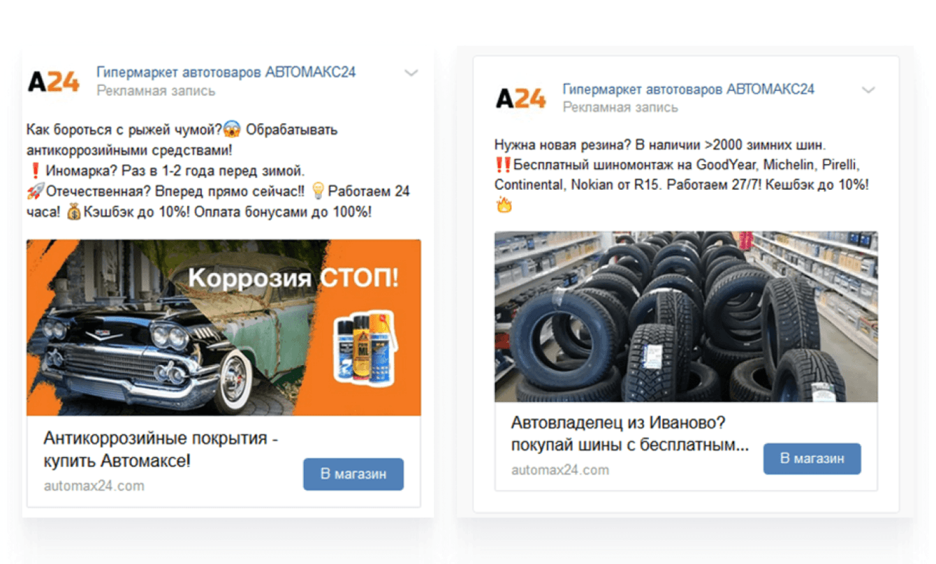 Создавали креативы с яркими изображениями, привлекающими внимание к проблеме, а также использовали «живые» фото из магазина: