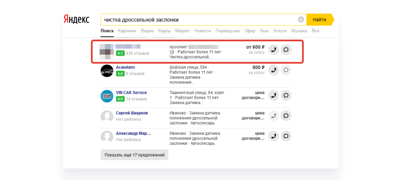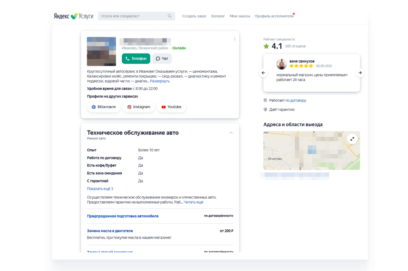 7. Представить автосервис в сервисе Яндекс.Услуги максимально полно и обеспечить приток заявок.