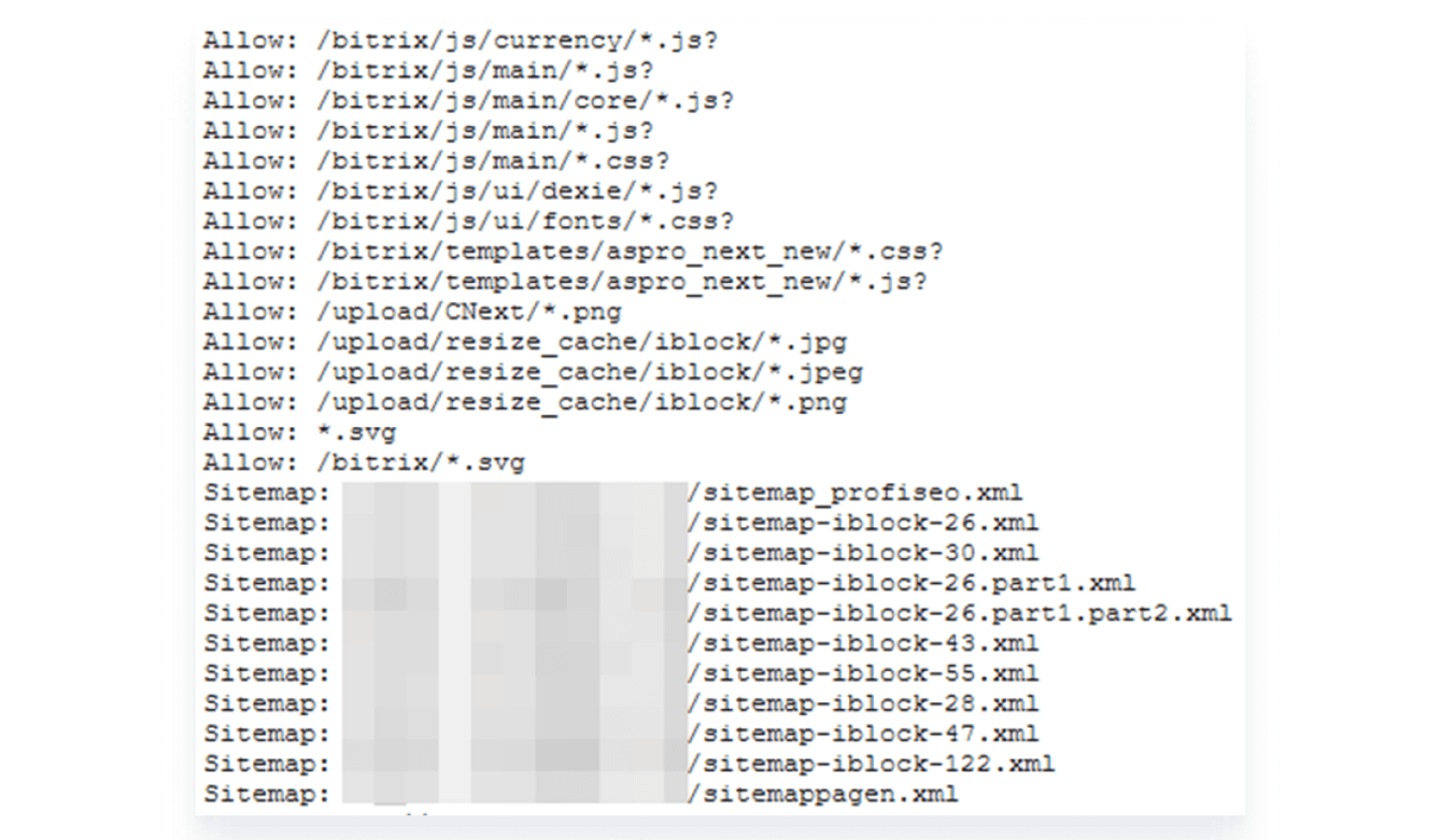 Сайт большой (более 100.000 страниц), поэтому важно обеспечить быструю индексацию (обход) поисковыми роботами. Для этого для каждого инфоблока мы сгенерировали отдельный sitemap.xml и добавили ссылки на каждый из них в файл robots.txt. Предусмотрели sitemap для псевдостраниц (ссылки генерируются автоматически при создании страницы). Также настроили автоматическую проверку наличия большого числа не включенных в карту сайта страниц товаров (если таковое обнаруживается, мы разбираемся в причинах, а они всегда удивительно разнообразные и любопытные).